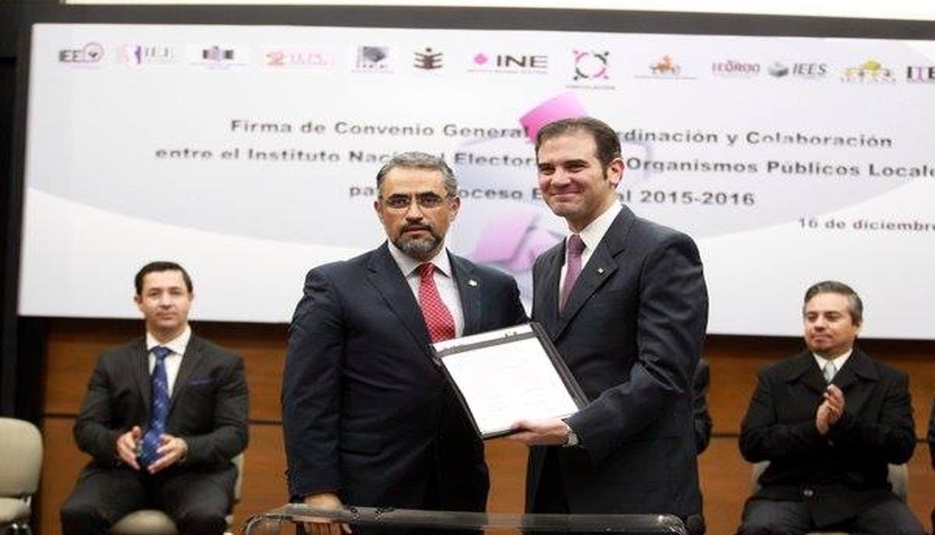 Firma del Convenio General de Colaboración y Coordinación entre el INE y el IEE para el Proceso Electoral 2015-2016.