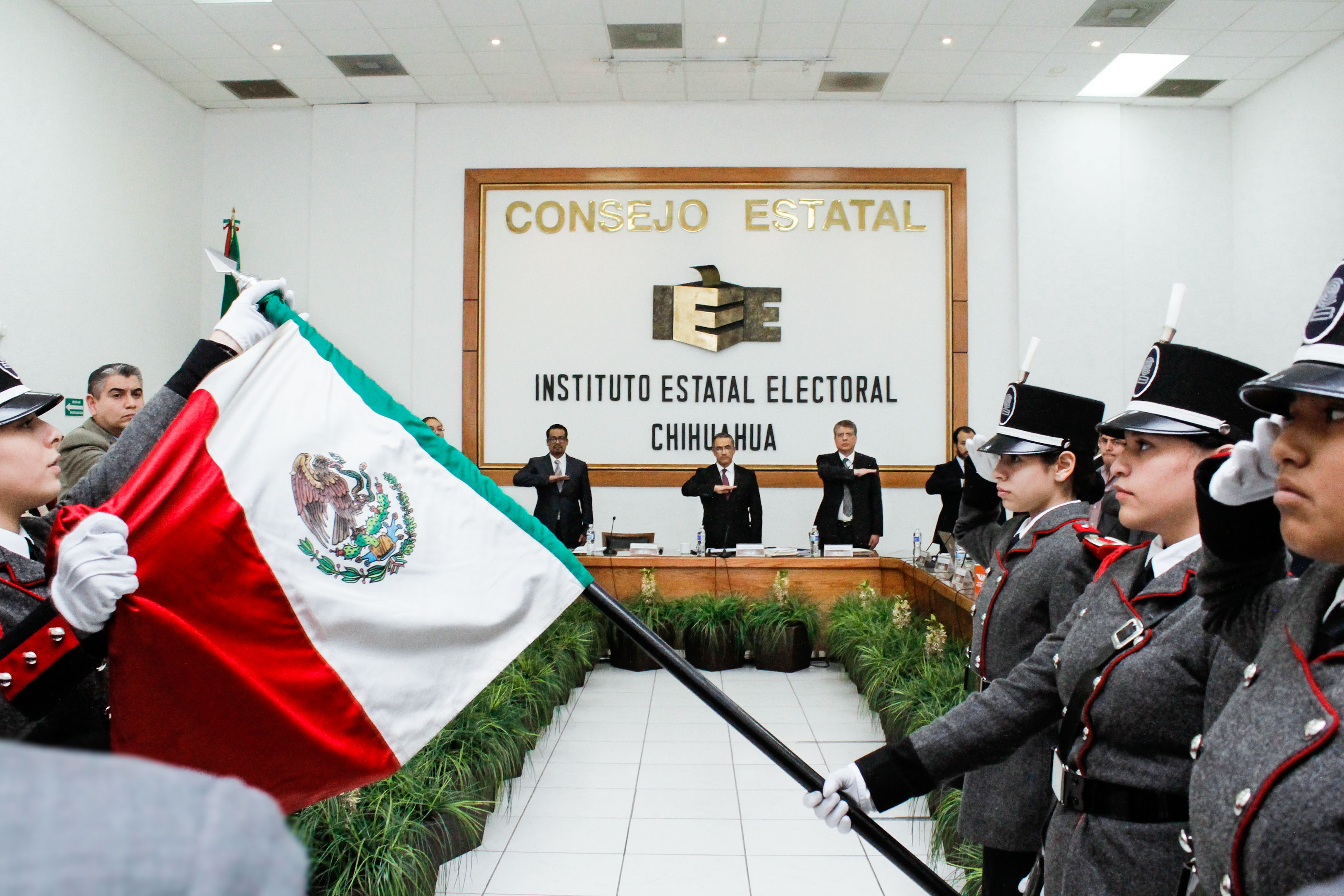 Chihuahua. - El consejero presidente del Instituto Estatal Electoral de Chihuahua (IEE), Arturo Meraz González, declaró el inicio del Proceso Electoral Local 2017-2018, en la Sexta Sesión Ordinaria del Consejo Estatal del IEE, celebrada la tarde de hoy 1 de diciembre del 2017, enmarcada por los honores a la Bandera e Himno Nacional.