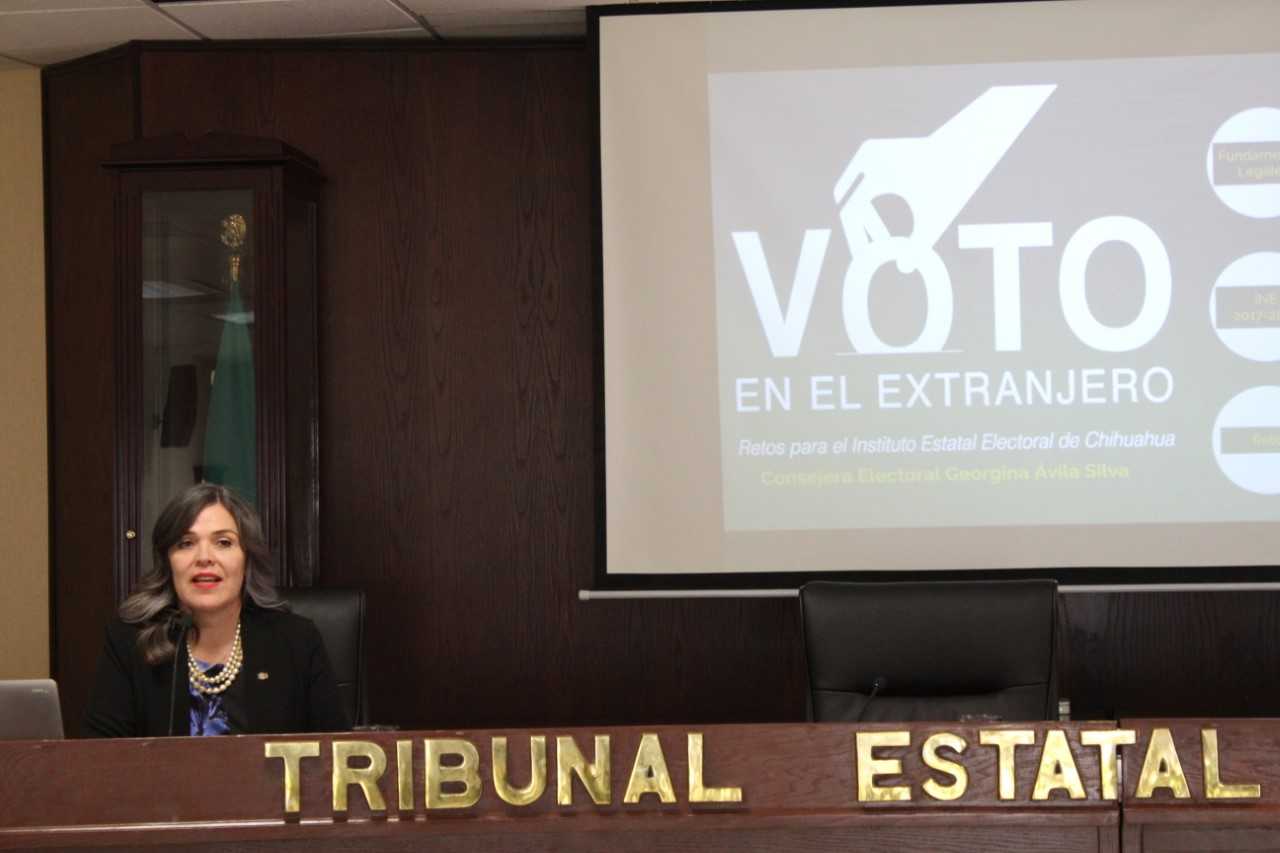 Así lo planteó la consejera del Instituto Estatal Electoral de Chihuahua (IEE), Georgina Ávila Silva, durante la conferencia "Voto de los Mexicanos en el extranjero", impartida junto con el consejero del Instituto Electoral de la Ciudad de México, Mauricio Huesca Rodríguez, en el Tribunal Estatal Electoral (TEE).
