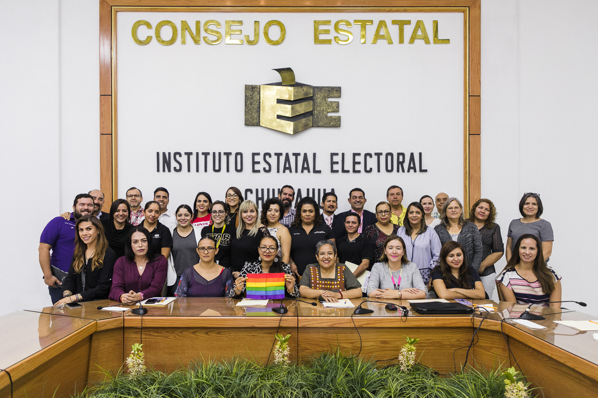 Chihuahua, Chih. - A manera de diálogo entre autoridades electorales y representantes de la comunidad LGBTTTI+, la Junta Local Ejecutiva en el Estado de Chihuahua del Instituto Nacional Electoral (INE), presentó el Protocolo para personas trans, en una mesa realizada en la sala de sesiones del Instituto Estatal Electoral de Chihuahua (IEE).