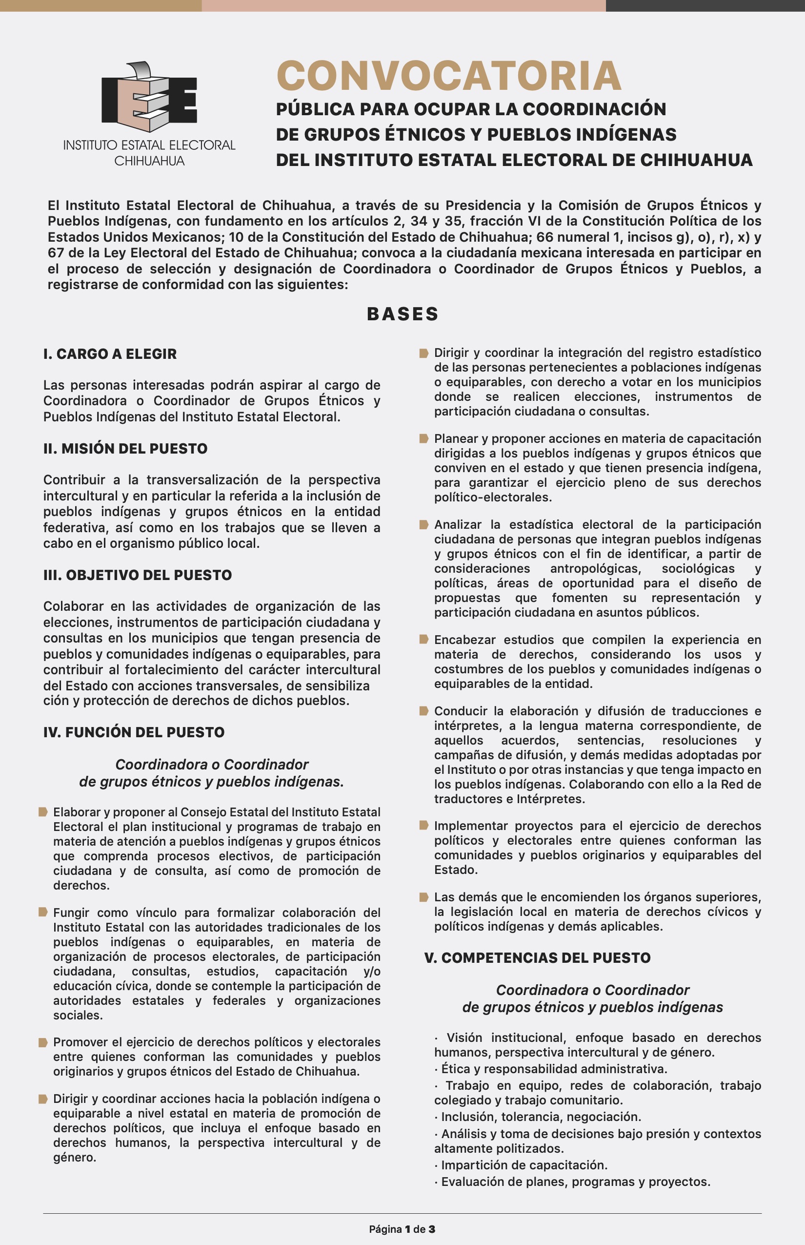 Convocatoria pública para ocupar la coordinación de grupos étnicos y pueblos indígenas