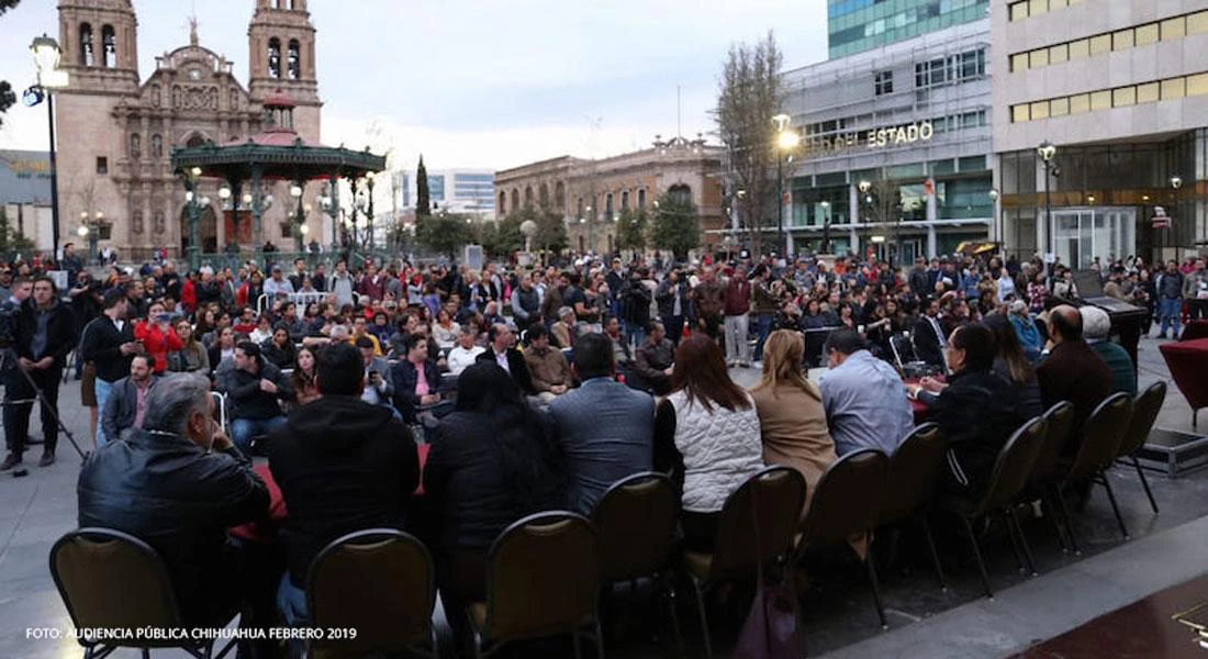 La Ley de Participación Ciudadana del Estado de Chihuahua reconoce las audiencias públicas como instrumento de participación social, por el cual la ciudadanía puede: