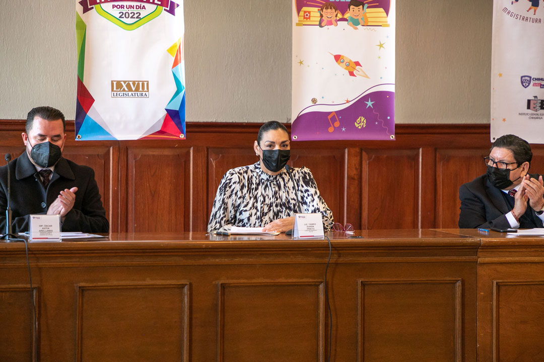 Chihuahua, Chih. — El Instituto Estatal Electoral (IEE), el Tribunal Superior de Justicia del Estado, el Congreso del Estado y la Secretaría de Educación y Deporte de Gobierno del Estado de Chihuahua, presentaron en rueda de prensa, las convocatorias Gobernadora(or) Infantil 2022, Diputado y Diputada Infantil por un día edición 2022 y Magistratura Infantil 2022.